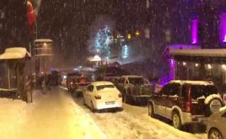 Rize'nin Çamlıhemşin ilçesinde bulunan ünlü turizm merkezi Ayder Yaylası'nda kar yağışının ardından trafik durma noktasına geldi.